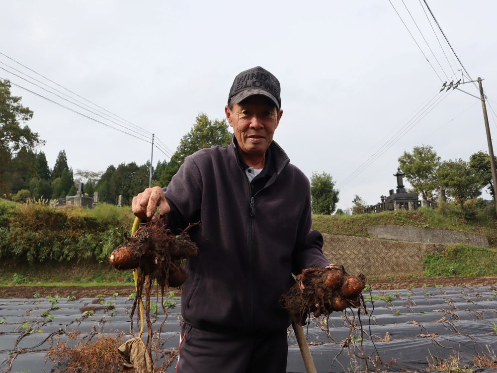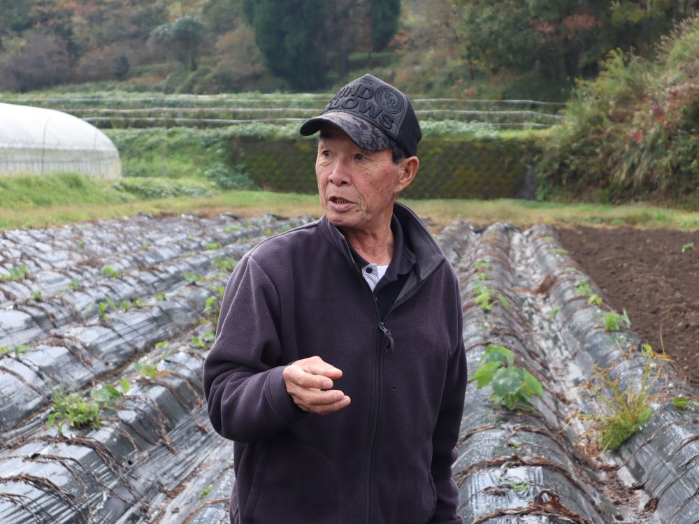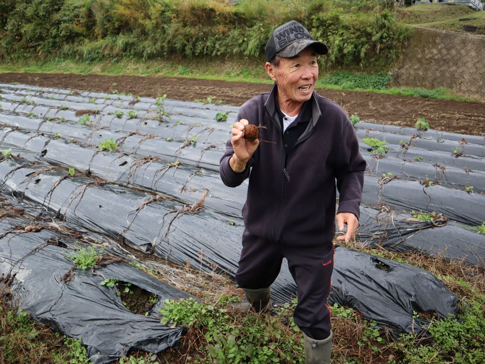 里芋は低温に弱い野菜ですが、標高の高い上田さんの農地は、氷点下10度にまで冷え込むことも。