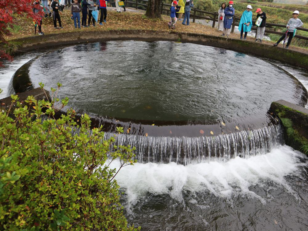 円形分水は地域の農業にとって重要な場所で、「毎年小学生たちが社会科見学に来るんだよ」と誇らしげに紹介してくれました!