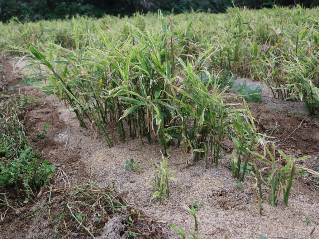 昔のしょうが畑ではもっと雑草が生えていたようですが、長年かけてこのやり方に行きつきました。