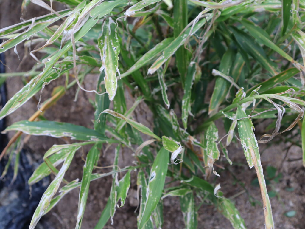 被害にあったしょうがは、上記の写真のように背丈が低く、葉がぼろぼろの状態。