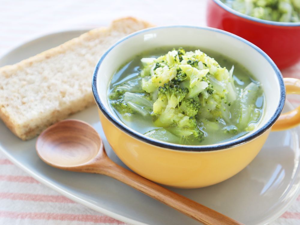 投稿日2026.2.13おいしさも栄養もまるごと◎ブロッコリーと玉ねぎのシンプルポタージュ【管理栄養士レシピ】ブロッコリーレシピ玉ねぎ管理栄養士農産目次 メイン食材は「ブロッコリー」!【レシピ】ブロッコリーと玉ねぎのシンプルポタージュ<材料>2~3人分<作り方>管理栄養士からひとことブロッコリーの甘みを活かして、シンプルに◎メイン食材は「ブロッコリー」! 彩りがよく、サラダや付け合わせに大活躍のブロッコリー。アイチョイスでは、有機栽培や、農薬を削減して栽培されたブロッコリーを取り扱っています。「あんしんして食べられる」「茎まで甘い」と、うれしいクチコミもたくさん届いているんですよ♪そんなブロッコリーを使ったレシピを、アイチョイスの管理栄養士・高橋素子さんに教えてもらました!「ブロッコリーと玉ねぎのシンプルポタージュ」は、ブロッコリーをまるごと1株使った食べ応えのあるスープ。シンプルだからこそ、ブロッコリーのおいしさが引き立つ一品です♪【レシピ】ブロッコリーと玉ねぎのシンプルポタージュ <材料>2~3人分 ブロッコリー・・・・・・・・1株 玉ねぎ・・・1個(小さめなら2個) にんにく・・・・・・・・・・1片 オリーブ油・・・・・・・大さじ1 チキンコンソメ・・・・・小さじ2 塩、こしょう・・・・・・・各少々 水・・・・・・・・・・・・600ml<作り方>1.ブロッコリーは小房に切り分け、茎の部分は皮をむいて薄切りにする。玉ねぎ、にんにくは薄切りにする。 2.鍋にオリーブ油、にんにくを入れて弱火で熱し、香りが立ったら玉ねぎを加え、中火でしんなりとするまで炒める。ブロッコリーを加えて軽く炒め、水とチキンコンソメを加える。 3.煮立ったら弱火にし、15分ほど煮る。ブロッコリーがやわらかくなったら、火を止めてヘラでつぶす。 3.塩、こしょうで味を調え、仕上げにオリーブ油少々(分量外)を回しかける。 管理栄養士からひとことブロッコリーには、スルフォラファンという抗酸化成分が含まれています。加熱すると減ってしまいますが、ブロッコリーを切ってから少し空気に触れさせておくことである程度残せますよ◎ビタミンC、葉酸、食物繊維などに加え、たんぱく質の含有量も野菜の中ではトップクラス!スープにすれば、溶け出た栄養がまるごといただけます♪ヘラでつぶす際、ブレンダーやミキサーを使ってなめらかにするのもおすすめ。お好みの食感に仕上げてくださいね! 管理栄養士高橋素子さんブロッコリーの甘みを活かして、シンプルに◎ しっかり煮ることで、房はほろほろ、茎までやわらかに仕上がりました。ブロッコリーの甘みが心地よく、一口ごとにじんわりとあたたまる味わいです。にんにくの風味が効いていて、シンプルながらもコクのあるおいしさ。最後にオリーブ油を加えることで、華やかな香りもプラス♪ヘラでつぶすことでブロッコリーの食感が残り、食べ応えもあります!パンを添えれば、朝食にもぴったり。飲み干す頃にはからだもぽかぽかになり、よい1日のスタートが切れそうです♪ブロッコリーをまるごとたのしめるポタージュ、ぜひお試しくださいね! アイチョイスの管理栄養士 高橋素子(たかはしもとこ)アイチョイス商品部 管理栄養士・フードコーディネーター主にカタログに掲載している野菜のレシピ、食材セットのメニュー開発・レシピを担当しています。 編集担当あんにん2025年アイチョイス入協。30代、二児の母。 毎日3食+おやつを欠かさない食いしん坊です。 新商品を見つけたら、とりあえず食べてみる派! ナッツはなんでも好きですが、食塩不使用のものを選んでいます◎