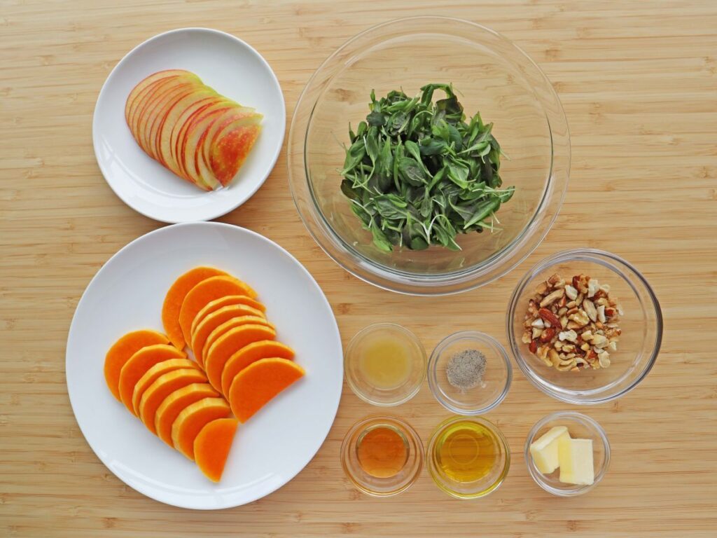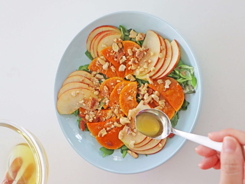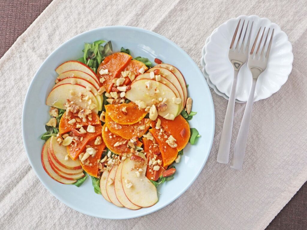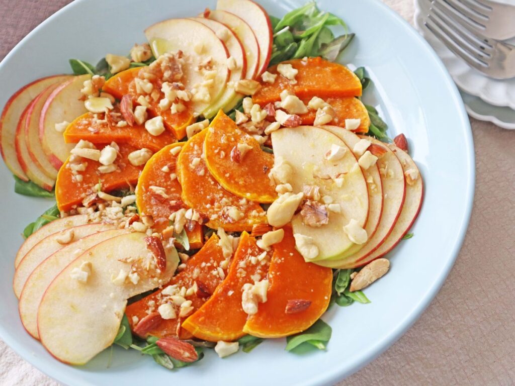 バターナッツかぼちゃとりんごの彩り秋サラダで、食卓に秋の訪れを楽しんでみませんか。