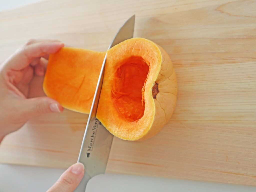 - バターナッツかぼちゃは、お好みで厚く切ると、ホクホク感をさらに味わえますよ!