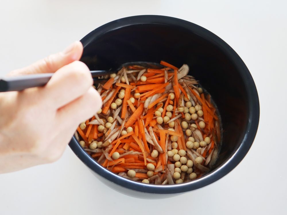 炒り大豆は、そのまま炊き込むと香ばしく適度な硬さに。