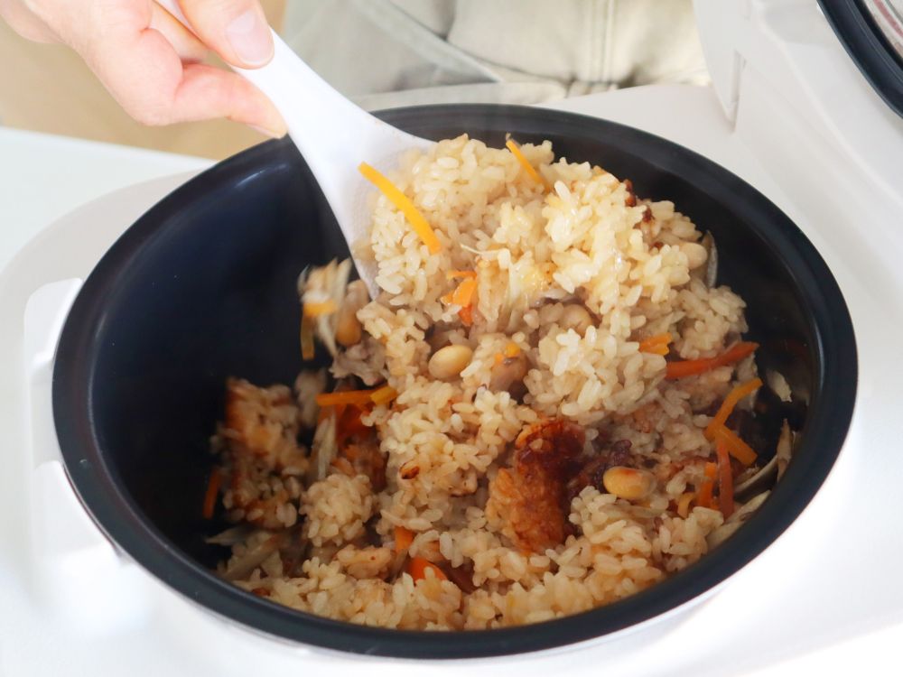 炊き上がったご飯は、たっぷりの具材で見た目も◎