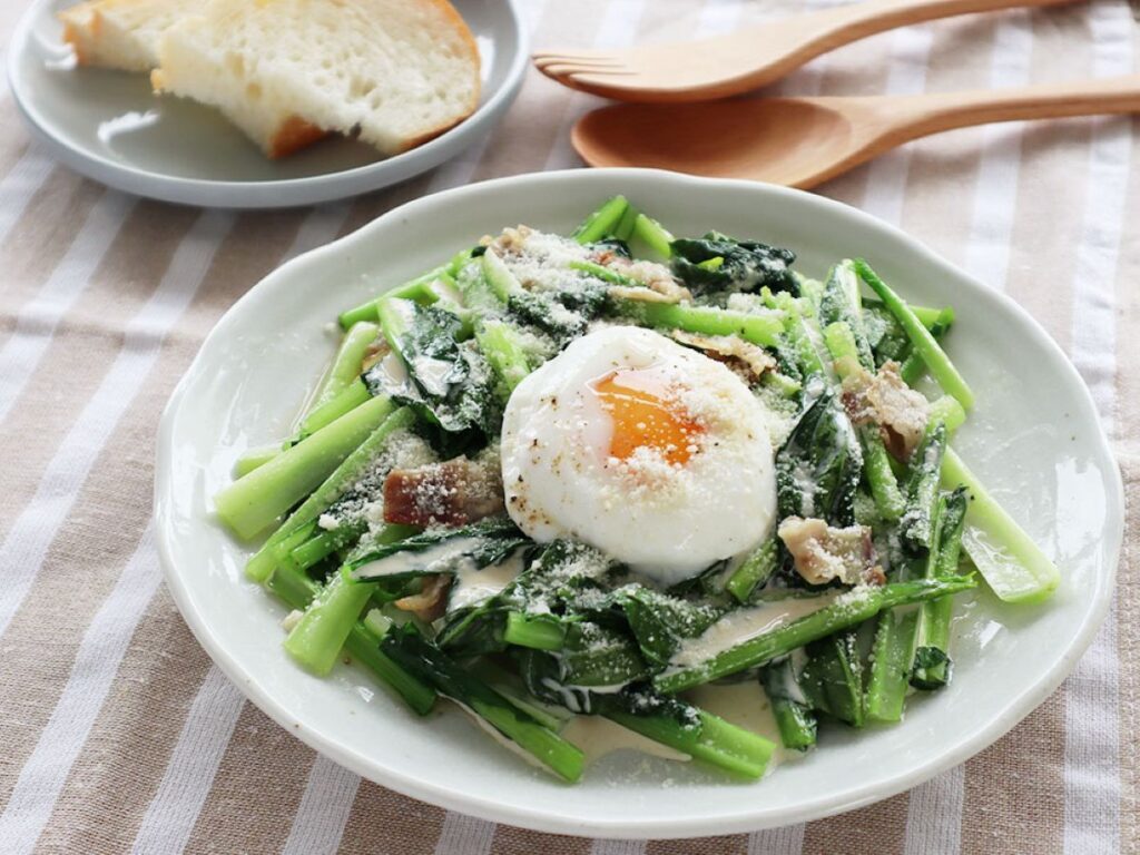 まず最初に紹介するのは、小松菜を1把ぺろりと食べられるサラダのレシピ。