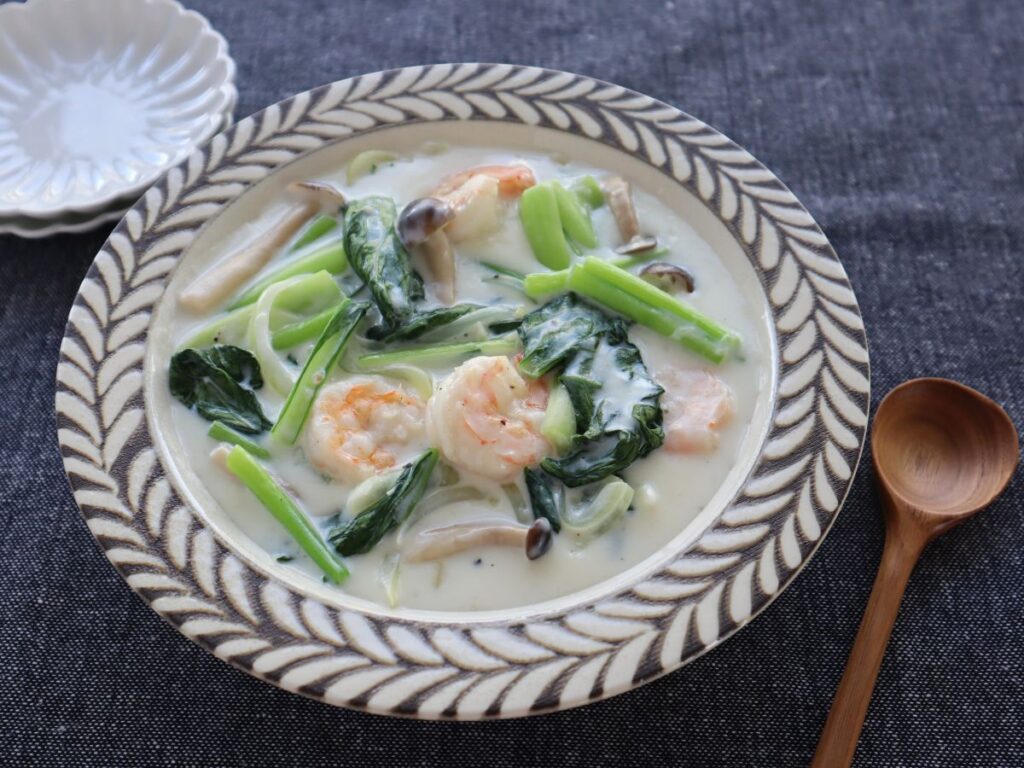 ぽかぽかからだが温まる、えびと小松菜のクリーム煮【管理栄養士レシピ】