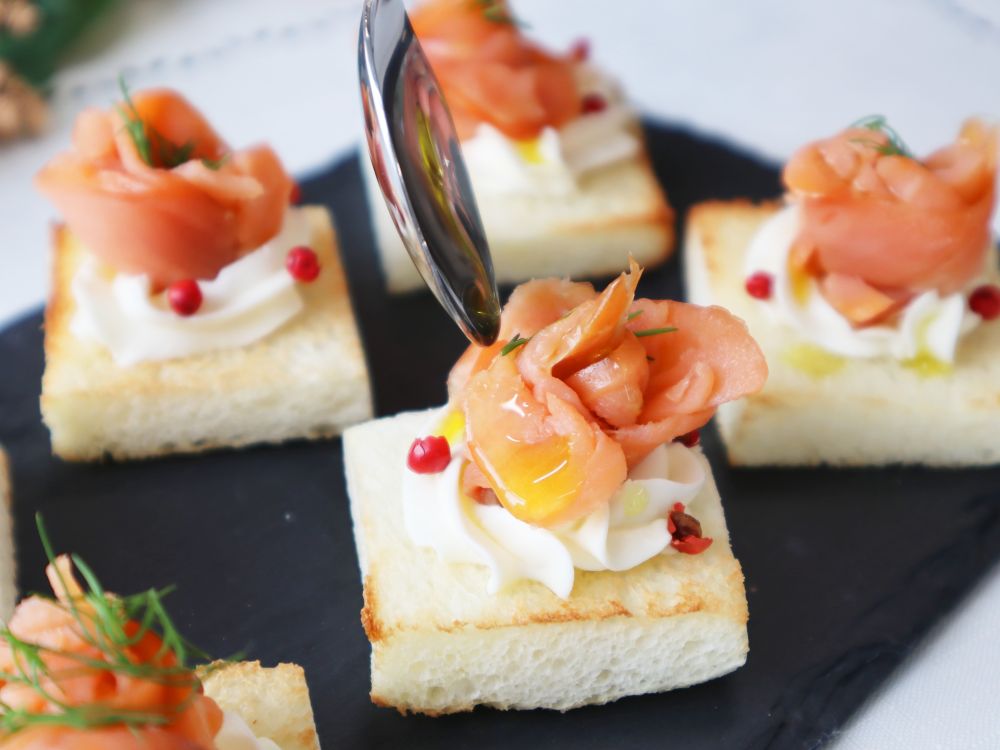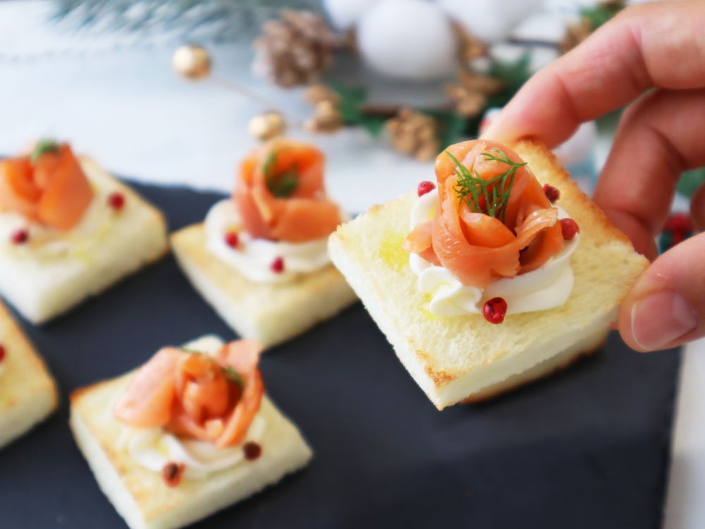 クリスマスを彩る、食パンサーモンタルティーヌ【レシピ】