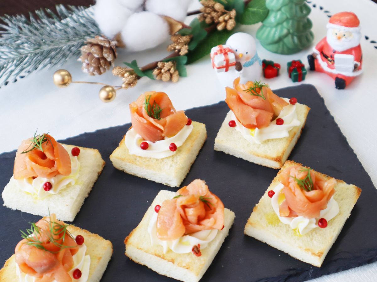 クリスマスを彩る、食パンサーモンタルティーヌ【レシピ】